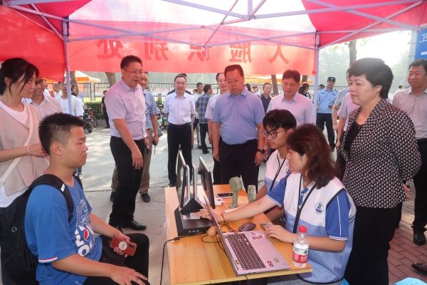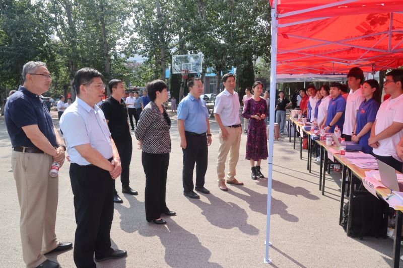 迎新当天,学校党委书记刘春华、校长刘宗明、党委副书记杨景波、副校长张勇一行来到主校区和舜耕校区迎新现场,看望前来报到的新生和家长,亲切慰问奋战在迎新一线的工作人员并实地察看了学生公寓等基础设施。学校办公室、党委宣传部、党委学生工作部、安全管理处、教务处、党委研究生工作部、实验室与资产管理处、后勤管理处、信息管理处、团委等部门负责人,也一同来到迎新现场。学校领导在迎新报到点认真听取了各学院迎新工作汇报、观看了各单位制作的迎新宣传展板,详细了解迎新工作流程和新生报到情况,与广大工作人员、志愿者以及2023级新同学、家长亲切交谈、合影留念。学校领导鼓励新生要志存高远,有理想、有追求;要脚踏实地,学好知识,增长才干,有担当、有作为;要涵养品德,情理并修,有品质、有修为,在拼搏的青春中书写精彩人生。在与学生家长的交谈中,学校领导表示,请家长放心,学校将为学生提供良好的学习和生活条件,保障学生顺利完成学业。9月5日晚,杨景波来到济南西站、济南站等地看望慰问迎新工作人员,欢迎新同学的到来。