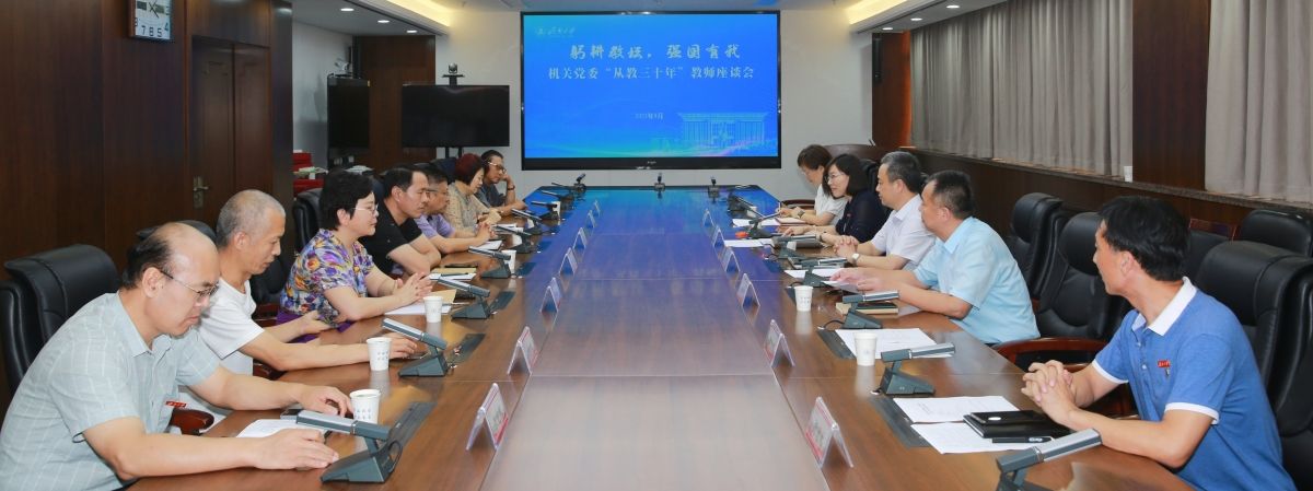 9月7日下午,在第39个教师节来临之际,机关党委举办“躬耕教坛、强国有我”从教三十年教师座谈会。学校党委副书记查玉喜出席会议并讲话,相关部门负责同志、从教三十年教师参加座谈,会议由机关党委书记刘芝主持。