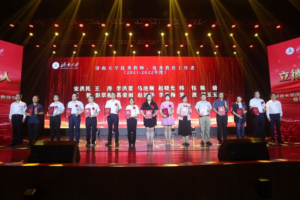 随后大会对全国高校黄大年式教师团队、国家级教学成果奖、国家自然科学基金重点项目、鲁迅文学奖、丁玲文学奖、山东省自然科学奖、山东省科技进步奖、山东省社会科学优秀成果奖、泰山学者特聘及青年专家、山东省杰青及优青基金获得者以及山东高校优秀辅导员、济南大学最美教师、教学名师等称号和奖励的获得者进行表彰。