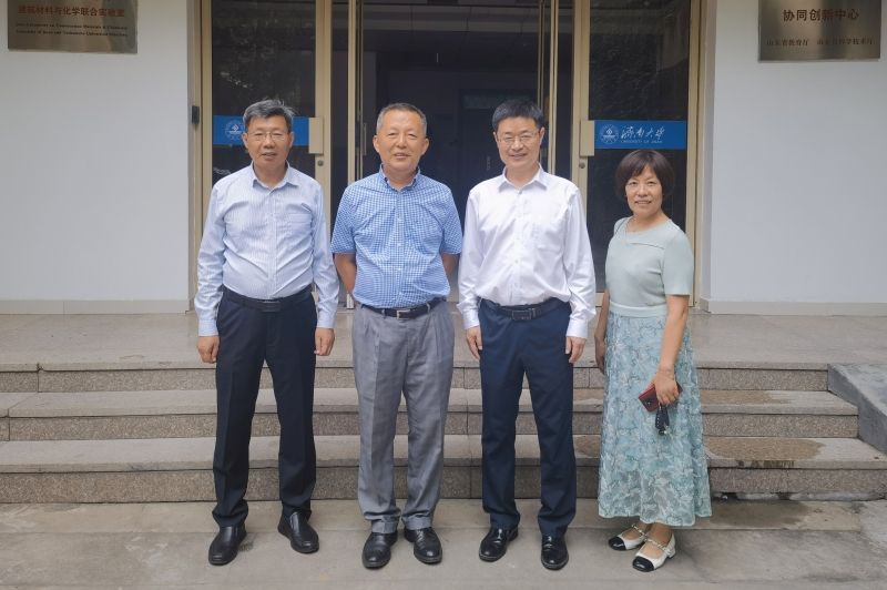 来访期间,朱兵拜访了求学期间89级32班班主任王建荣老师,共同回顾了学生时期的师生往事,回忆同窗情谊,谈及各位同学的发展和现状,再次感谢母校的培养,期待校友继续在各个行业内发光发热。随后,朱兵拜访了我校山东省建筑材料制备与测试技术重点实验室程新教授,感谢求学期间老师的培养和教诲,探讨了建筑材料行业的发展方向和规划,并就实验室发展相关特色方向提出建议,表示将继续为母校的发展贡献力量,期待与母校共同书写更加辉煌的建材发展新篇章。