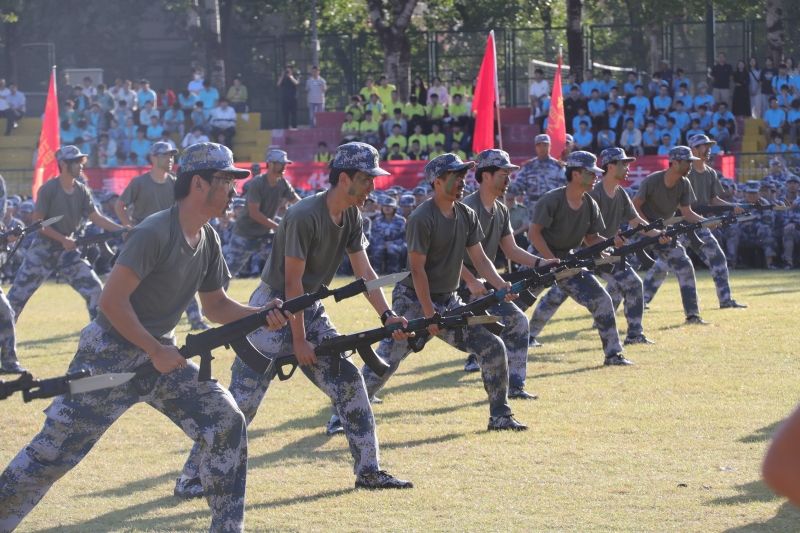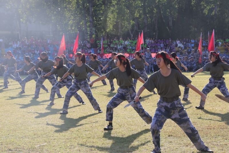 学生们训练有素、果敢勇毅,带来了刚劲有力的匕首操、格斗拳、战场防护等项目汇报,展现了昂扬向上的精神风貌和济大学子的青春活力,彰显出拼搏奋斗的精神和报效祖国的理想信念。