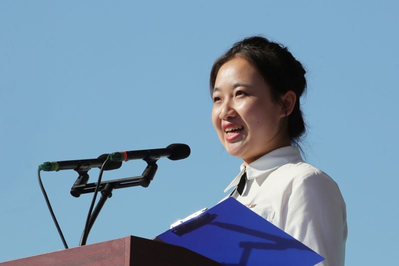 在校生代表、国家奖学金获得者、文学院李梦瑶在发言中分享了在济大学习、生活的感悟。她激励学弟学妹们要以“初生牛犊不怕虎”的锐气展现济大学子该有的模样,奋力跑出属于中国青年的青春加速度。