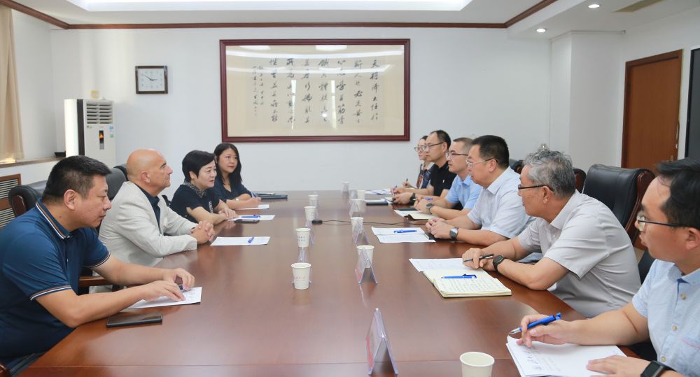 视频会议前,刘宗明会见了意大利佩斯卡拉省和基耶蒂省商会发展促进局主席简卢卡·鲁密拿里、济南市女企业家协会秘书长郭向平、山东省与意大利交流合作研究中心主任李云霞、知识产权出版社语言服务部主任胡新华一行。