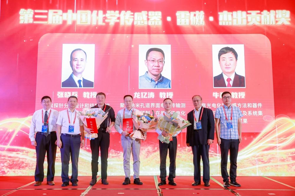 开幕式上同时颁发了2023年度“中国化学传感器雷磁终身成就奖”和“中国化学传感器雷磁杰出贡献奖”。中国科学院江桂斌院士获得终身成就奖,张晓兵教授、龙亿涛教授和牛利教授获得杰出贡献奖。