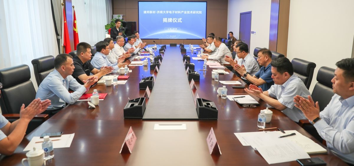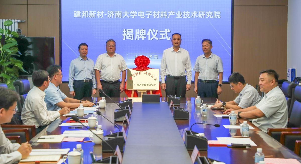 9月27日上午,济南大学——建邦新材电子材料产业技术研究院揭牌仪式在济南新材料产业园区举行。天桥区委副书记、区长张庆国,济南大学党委常委、副校长黄加栋出席活动。天桥区政府办公室、科技局、工信局,济南新材料产业园区管委会,山东建邦胶体材料有限公司,济南大学科技处、化学化工学院、济南大学科技园,相关企业负责人参加活动。仪式由济南新材料产业园区管委会主任韩利师主持。