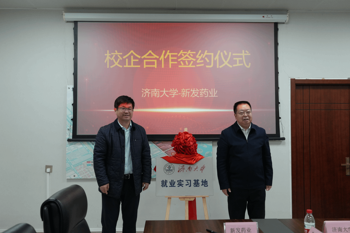 在山东新发药业有限公司,刘宗明一行受到公司董事长李新发的热情接待,参观了公司的实验区、办公区等,深入了解了公司的发展状况、业务范围、运营模式、管理理念及未来发展规划。刘宗明对山东新发药业有限公司的信任与支持表示衷心的感谢,就济南大学和化学化工学院在科学研究、人才培养、师资队伍、学科建设等情况做了详细介绍。