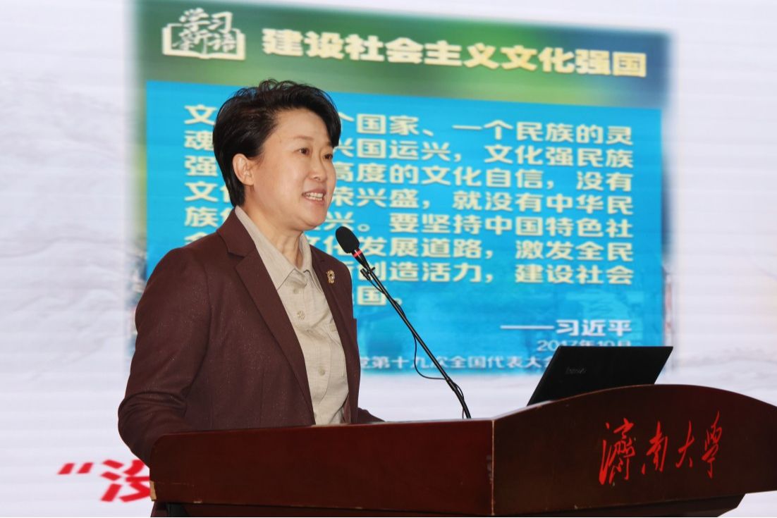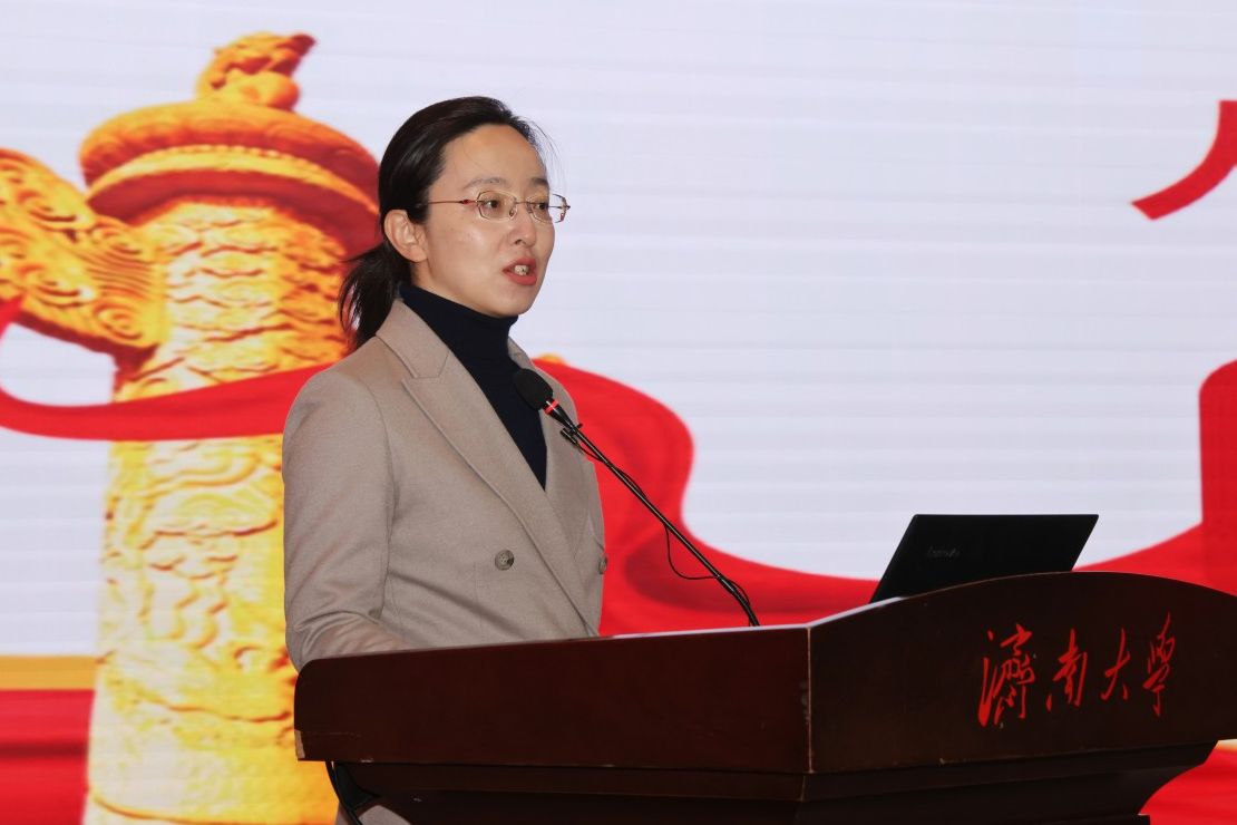 刘春华在主持活动时表示,“学思想 悟道理 用方法”主题宣讲进高校活动走进济南大学“开学第一讲”,对扎实推动用习近平新时代中国特色社会主义思想铸魂育人,广泛培育和践行社会主义核心价值观,教育引导高校大学生坚定马克思主义信仰、中国特色社会主义信念、中华民族伟大复兴信心,立报国强国大志向、做挺膺担当奋斗者发挥重要作用。她表示,学校将以此次活动为重要契机,教育引导广大学生向英雄学习、向前辈学习、向榜样学习,积极践行社会主义核心价值观,争做堪当民族复兴重任的时代新人,在推进中国式现代化火热实践中踔厉奋发、勇毅前行。