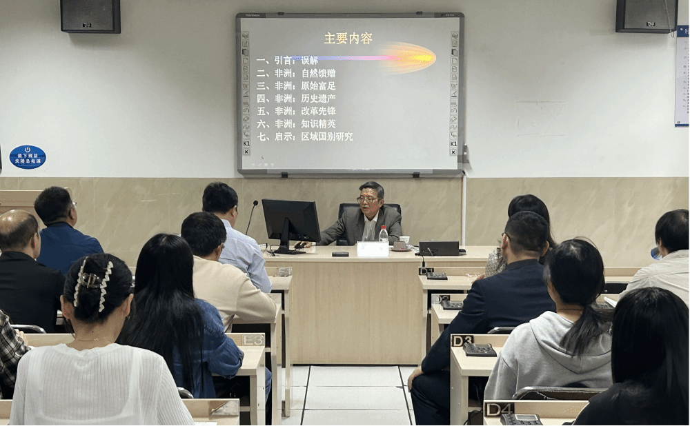 10月14日下午,济南大学非洲研究中心举办了题为“客观认识非洲:非洲研究的前提与基础”的讲座,邀请中国非洲史研究会名誉会长、联合国教科文组织非洲通史9-11卷国际科学委员会副主席、北京大学李安山教授主讲,讲座由外国语学院院长宋庆伟主持,国际教育交流学院院长孙岩梅、学校对非洲研究感兴趣的教师、外国语学院非洲研究中心教师、非洲留学生和在读研究生参加了本次讲座。