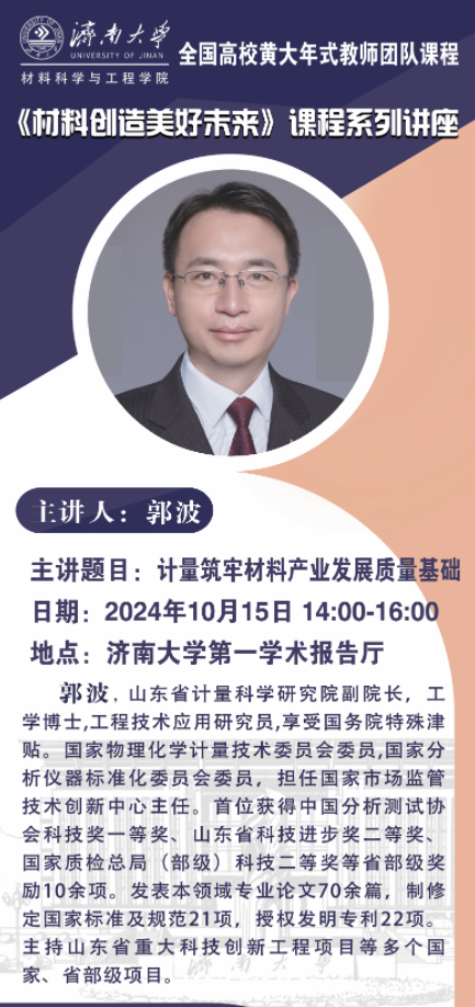全国黄大年式教师团队2024系列课程《材料创造美好未来》第三讲 :计量筑牢材料产业发展质量基础