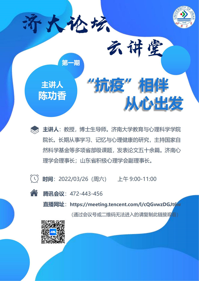 济大论坛2022云讲堂第一期:“抗疫”相伴,从心出发