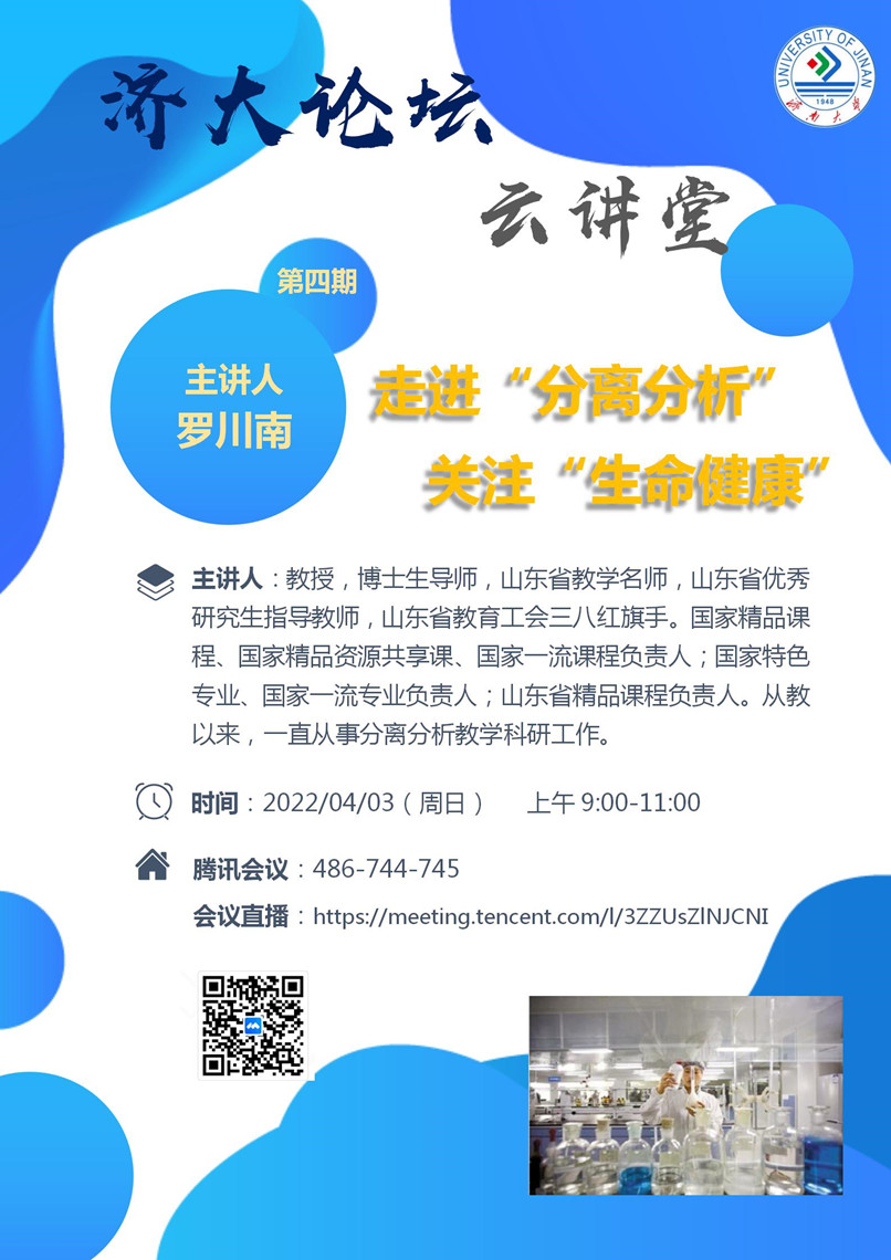 济大论坛“云讲堂”第四期:走进“分离分析”,关注“生命健康”