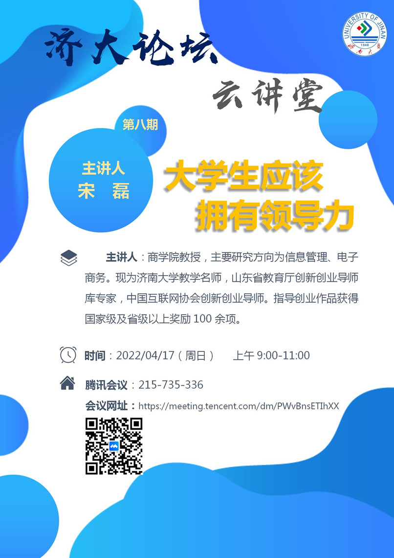 济大论坛“云讲堂”第八期:大学生应该拥有领导力