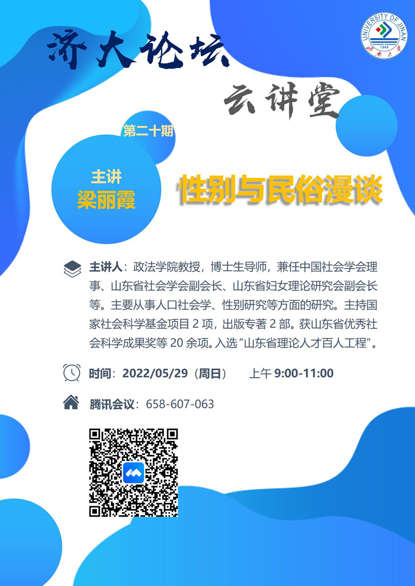 济大论坛“云讲堂”第二十期:性别与民俗漫谈