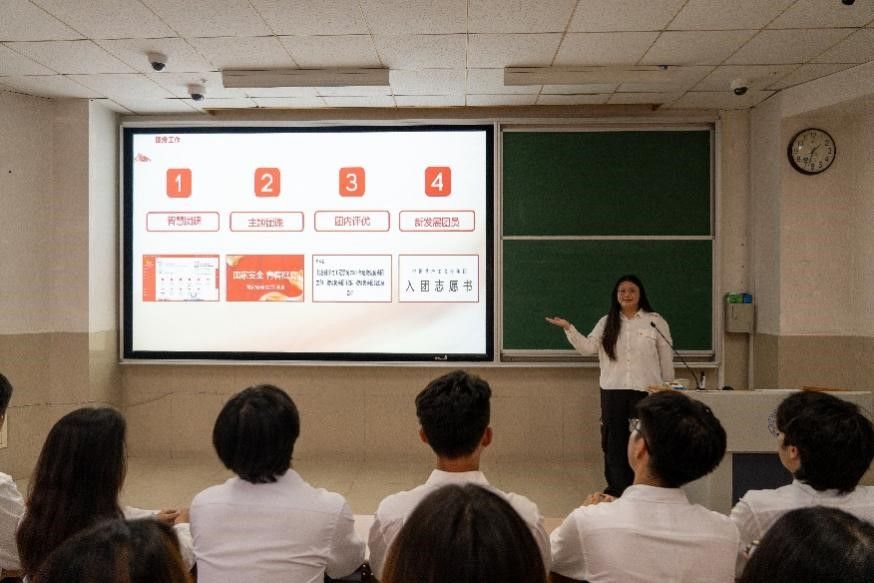 为提升学员们的团务工作能力和综合素质,团委办公室负责人郭靖渝进行了团务工作经验分享,为学员们介绍了“三会两制度一课”、团员教育评议制度等团内规章制度,并学习了数字化管理工具“智慧团建”系统的操作流程。