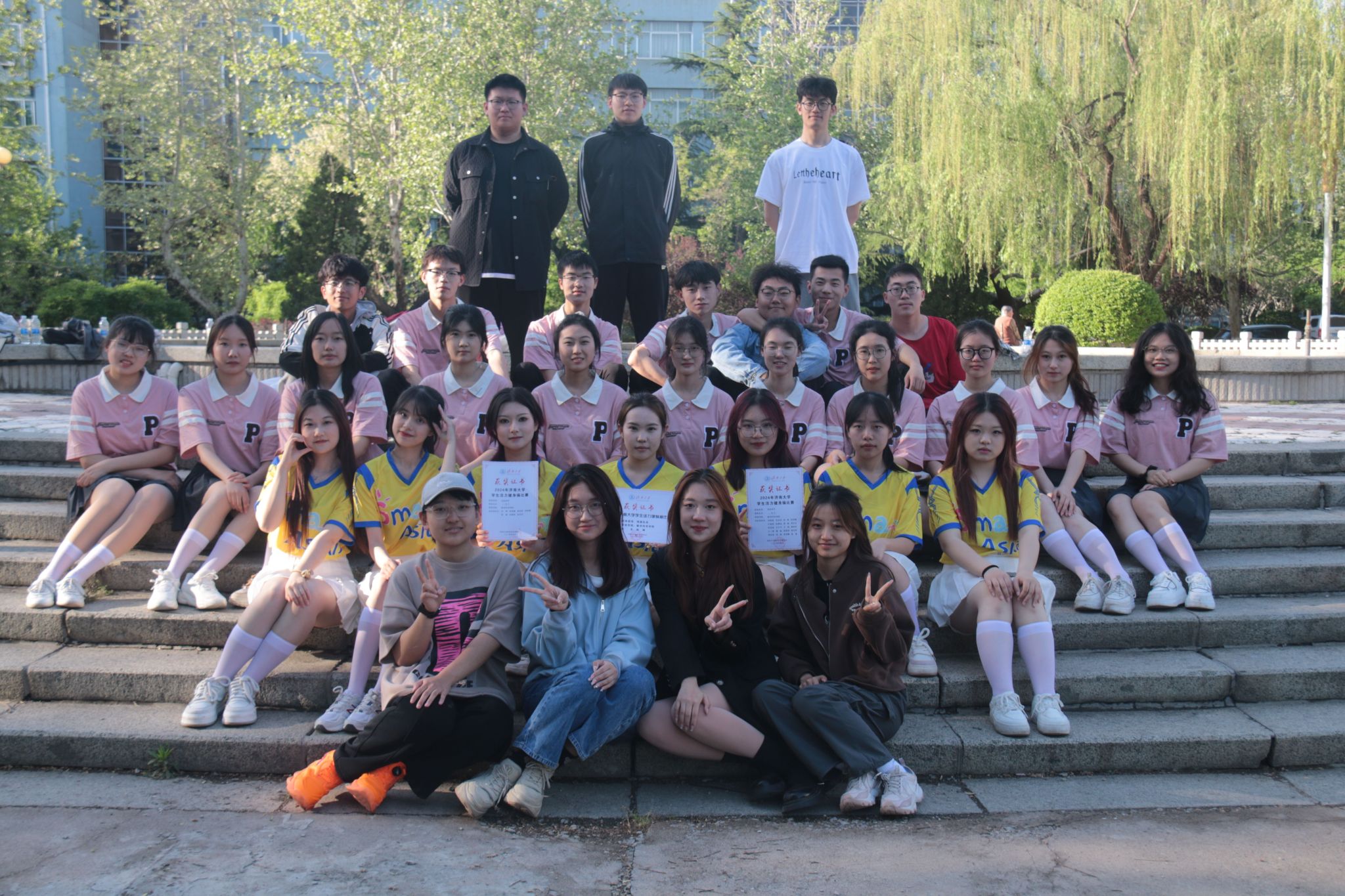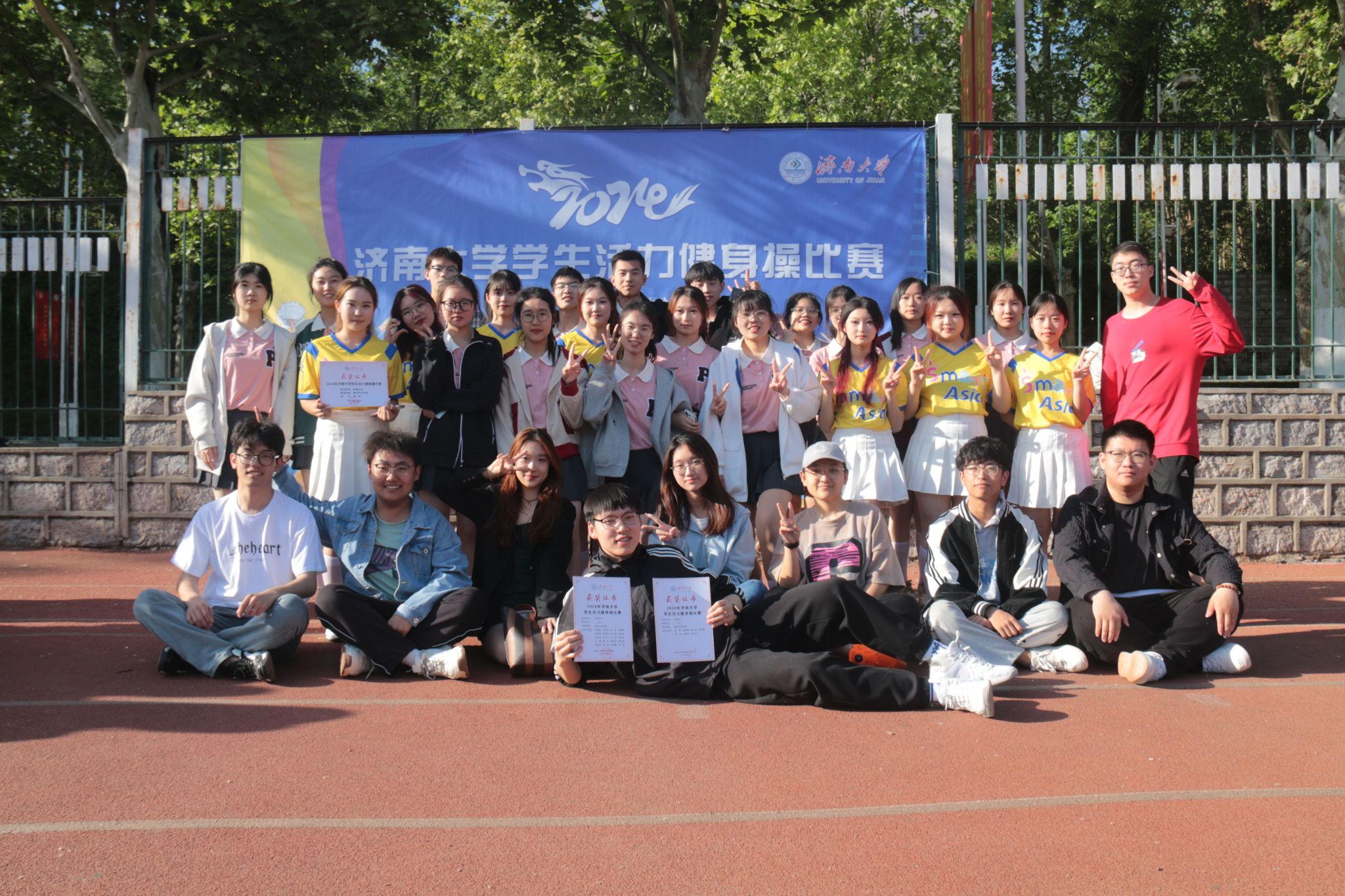 青春校园,盎然焕发;身姿舞动,激情飞扬。4月23日下午,数学科学学院健身操代表队参加了2024年济南大学学生活力健身操比赛,他们凭借出色的编排和卓越的表现荣获团体操规定动作二等奖和自选动作二等奖。