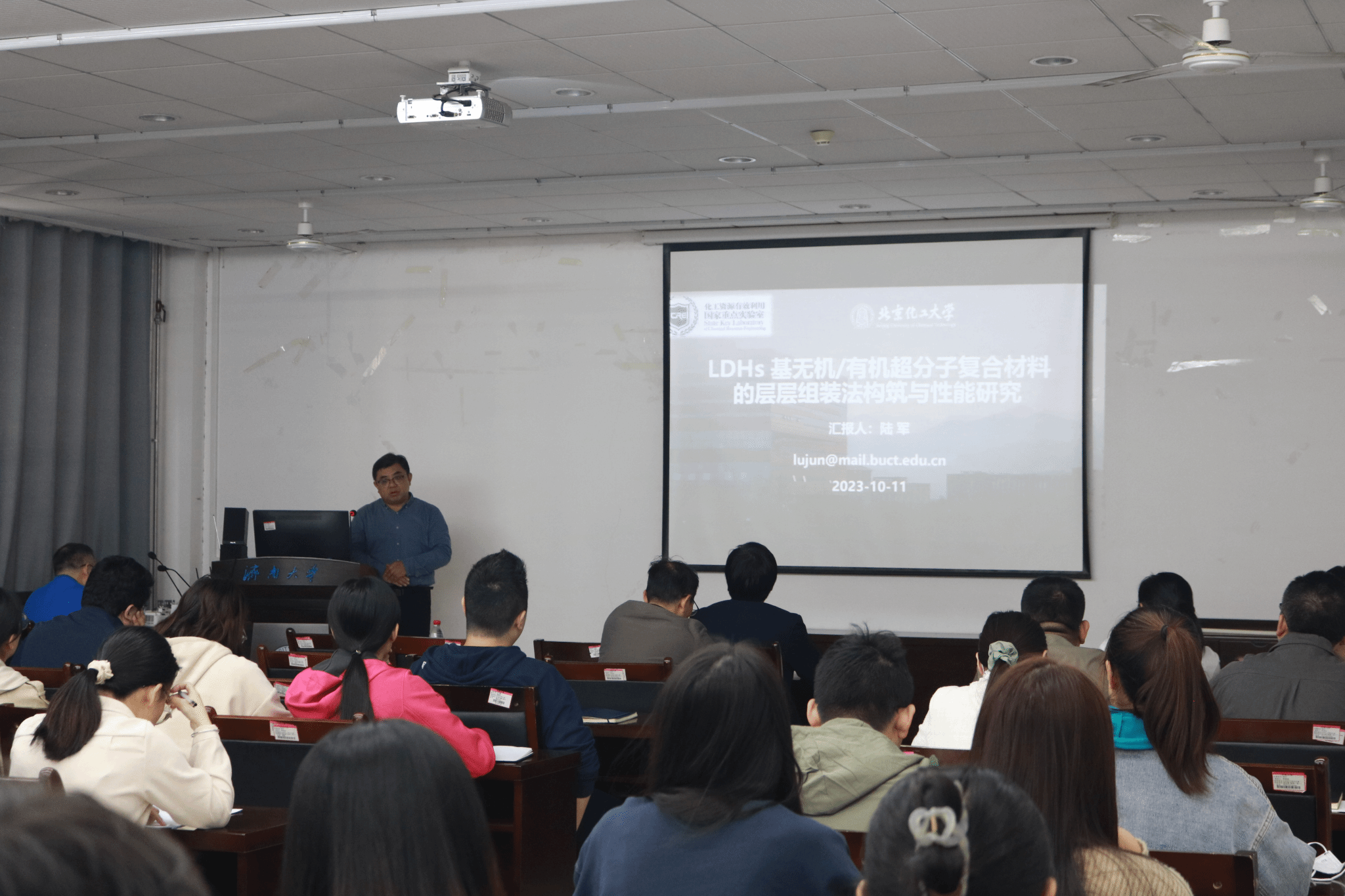 2023年10月11日,北京化工大学陆军教授(国家优青)应邀来校交流,并作学术报告。报告会在逸夫楼A111会议室举行,由智能材料与工程研究院院长蒋绪川教授主持,智能材料与工程研究院以及相关学院的师生参加了报告会。