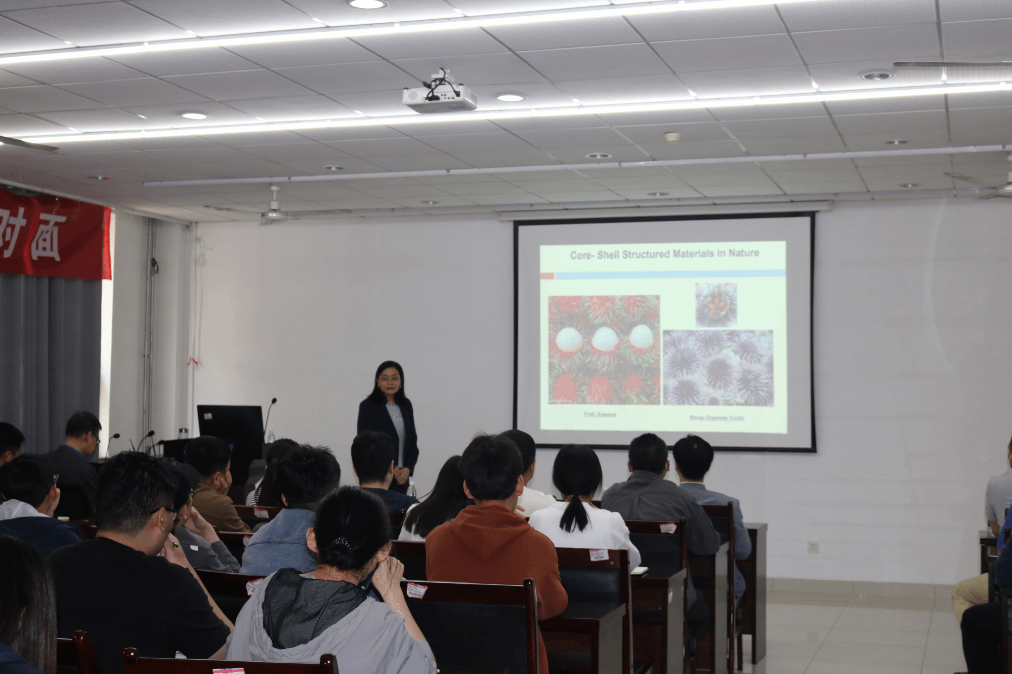 李蓓教授的报告题目为“两亲性核壳聚合物及杂化粒子的合成及应用”,主要介绍核壳纳米结构的纳米粒子的合成策略,通过接枝共聚、原位自组装和乳液聚合相结合,实现了在水性体系中一步合成的过程。另外还开发了智能微凝胶,Fe/聚合物和Au/Fe/聚合物杂化核壳颗粒,这些核壳颗粒已广泛应用于基因和药物输送、生物成像、光热疗法、抗菌涂层和水处理等多个领域。报告结束后,李蓓教授与研究院师生就相关专业问题进行了互动交流,气氛热烈,师生受益匪浅。