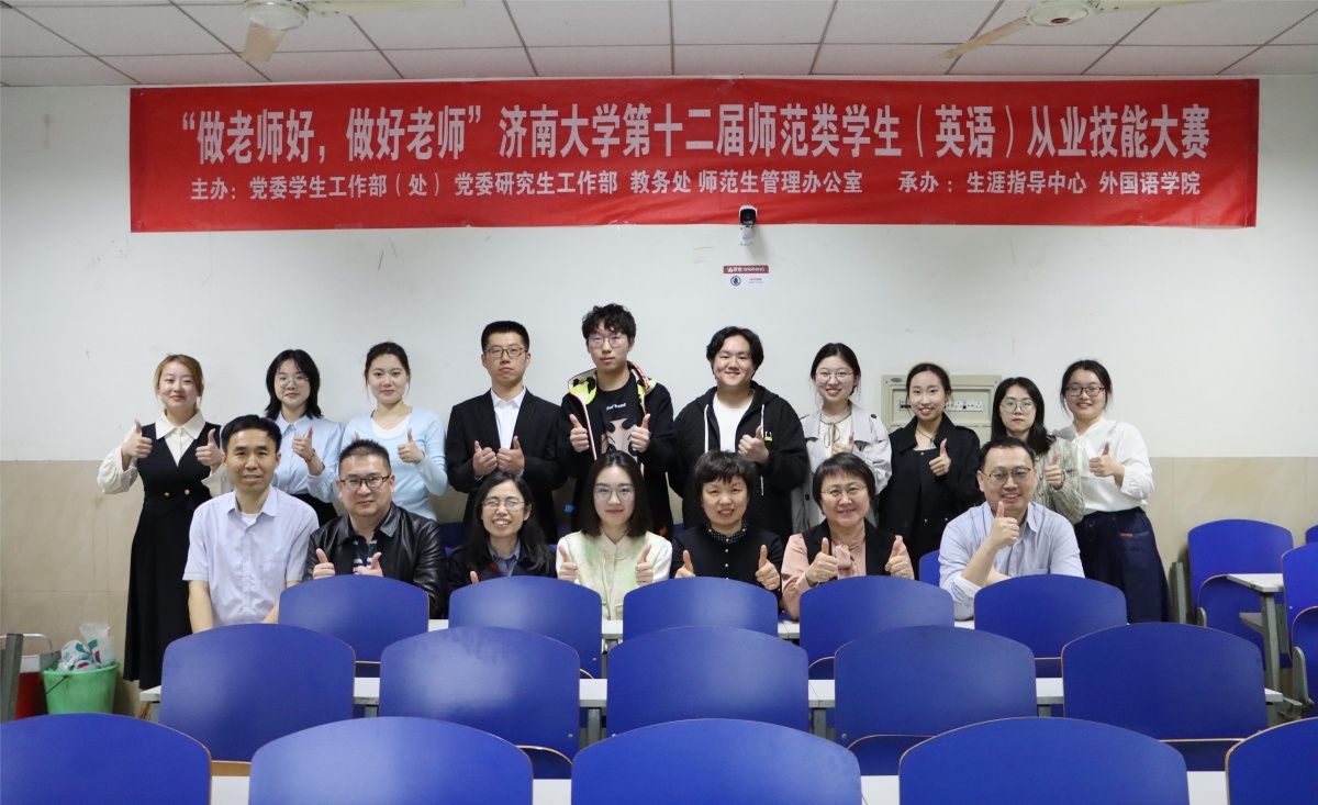 4月11日,由党委学生工作部(处)、党委研究生工作部主办,外国语学院承办的济南大学第十二届师范类学生从业技能大赛(英语学科)校级决赛在第一教学楼成功举办。七贤中学薛立萍老师,泉景中学李亚男老师和外国语学院王磊、李云霞、吴丽老师担任评委。